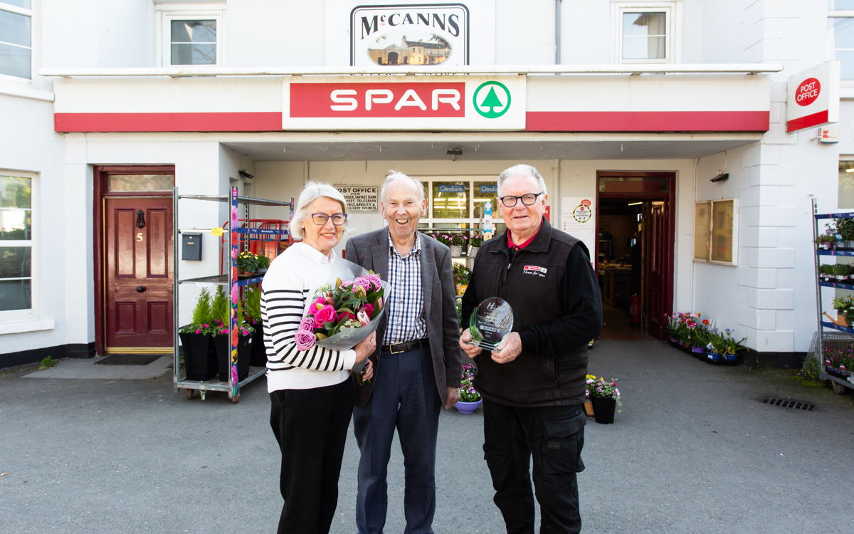 To mark the occasion, they were presented with a commemorative plaque by Mr John Agnew, former Chairman of the Henderson Group, which owns the SPAR brand in Northern Ireland.