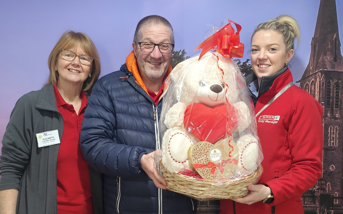 Katrina the store manager and the community rep Elizabeth, handed over the ‘love’ly hamper to the lucky winner Gary!