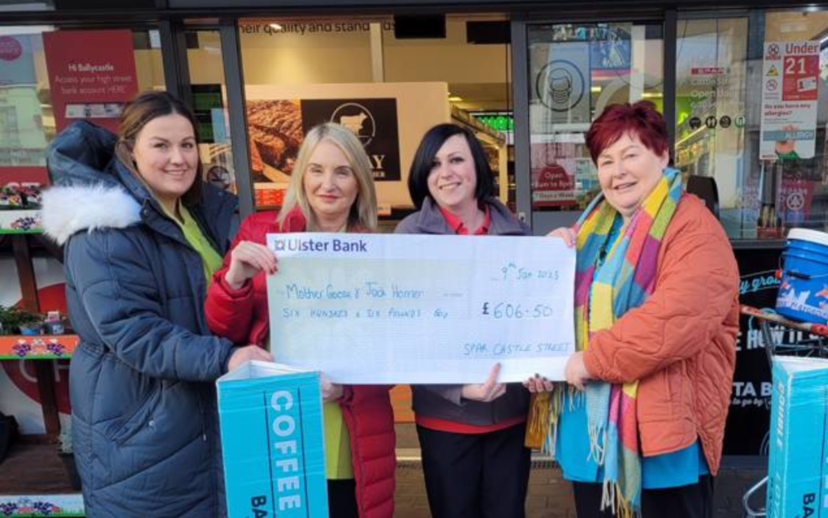 SPAR Castle Street handover a £600 cheque to Jack Horner & Mother goose community playgroups!