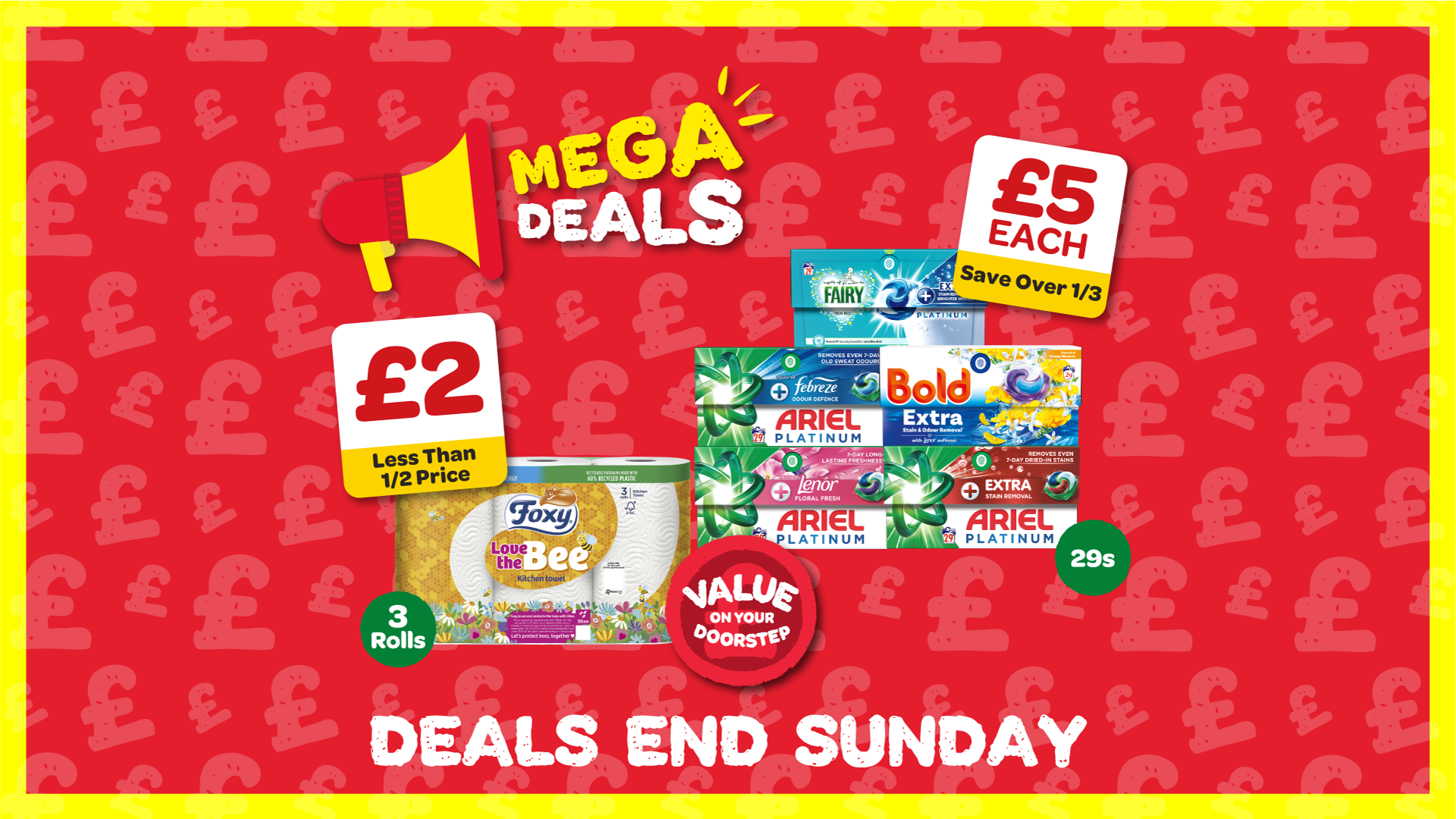 Grab Ariel, Bold or Fairy Platinum Tabs (29's) for £5 each and Foxy Love the Bee Kitchen Roll (3 Roll) for just £2🧼