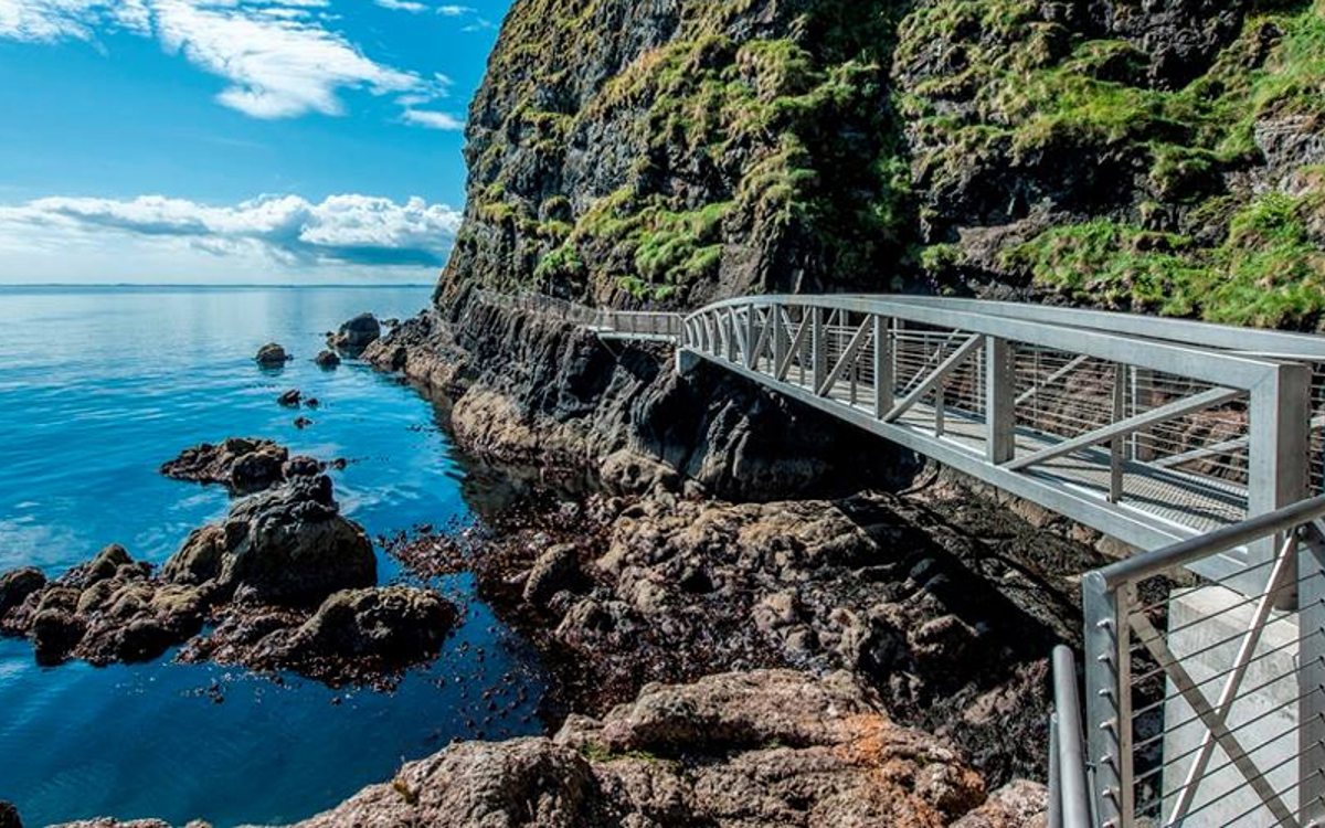 Gobbins Cliff Path is a dramatic coastal walk that runs along the Gobbins cliffs, where Islandmagee meets the Irish sea 32km north of Belfast. The pathway is a mixture of clifftop hiking and newly-built steel tunnels, perfect for days out with the kids.