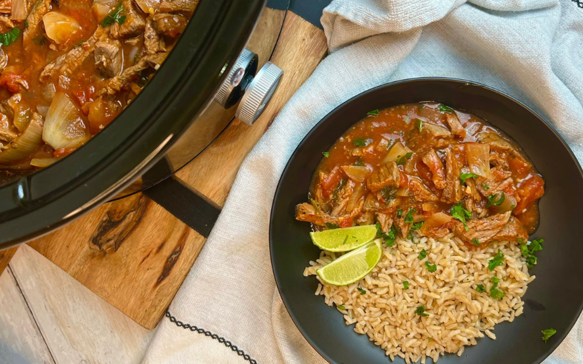 - Brown your beef in a pan. Then add this to the slow cooker.