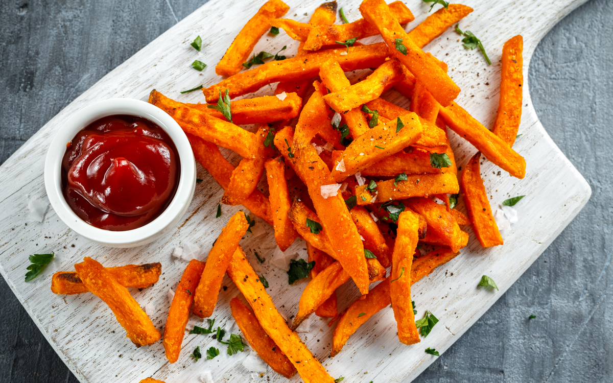 - Peel the sweet potatoes, then slice each potato into even ¼ inch thick sticks.