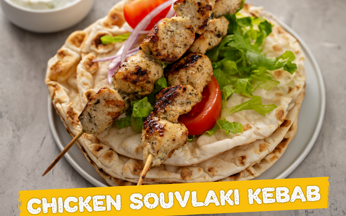 Try our Chicken Souvlaki Kebab—tender, marinated chicken skewers grilled to perfection. Infused with Mediterranean spices and served with fresh veggies and a tangy tzatziki sauce, these kebabs make for a flavourful and satisfying meal that's easy to enjoy anytime.