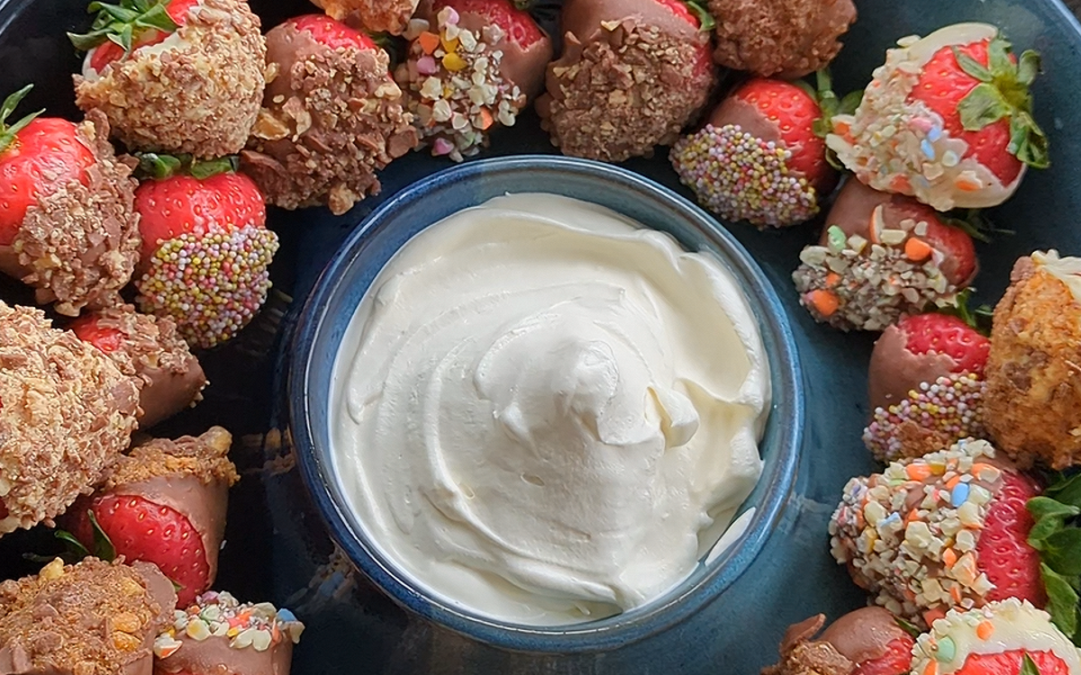 - Serve: Place the chilled chocolate-coated strawberries on a serving dish and serve with a generous dollop of whipped cream.