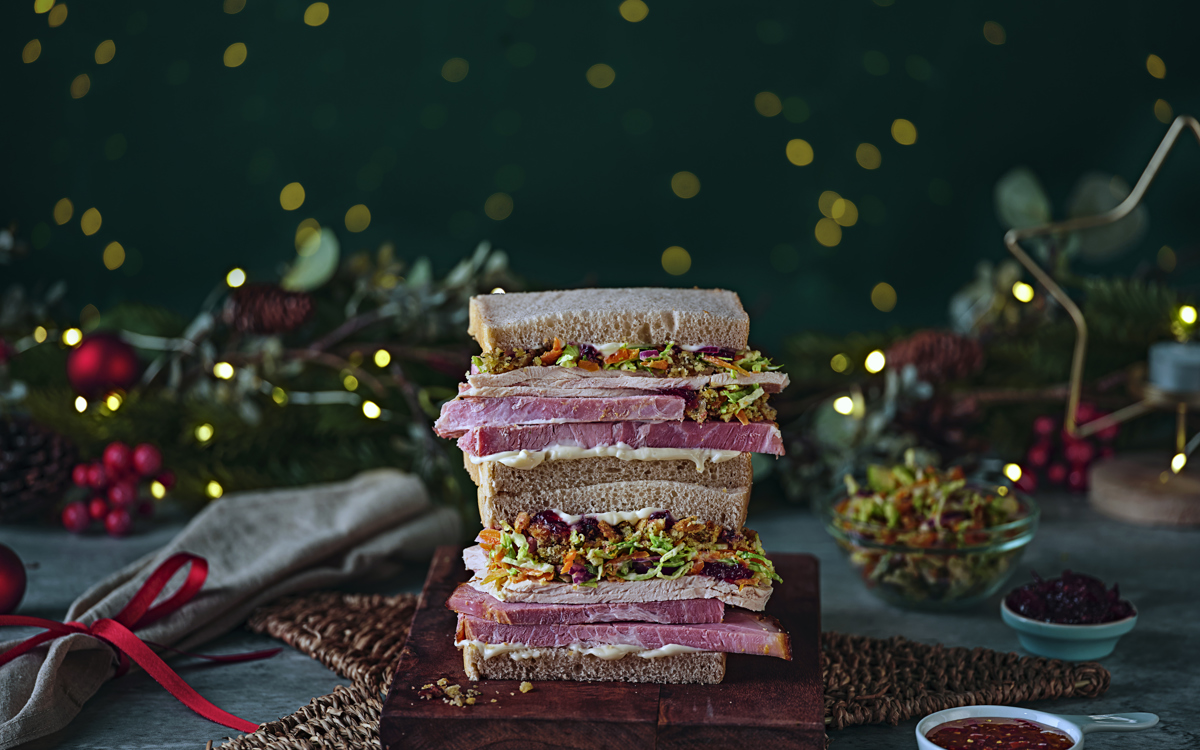 - Pile on thick slices of leftover roast turkey and gammon for that classic Christmas flavour.