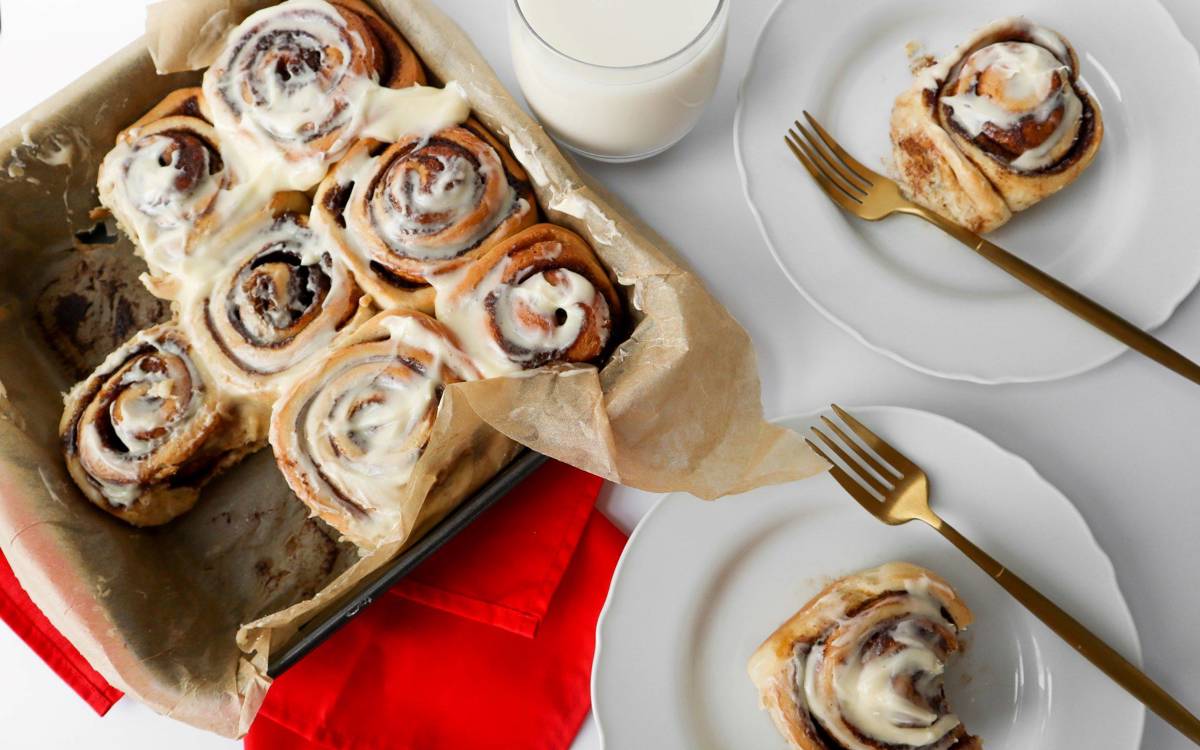 - In a bowl place the cream cheese, butter icing sugar and vanilla extract. Beat until smooth and smother over the buns. Enjoy!