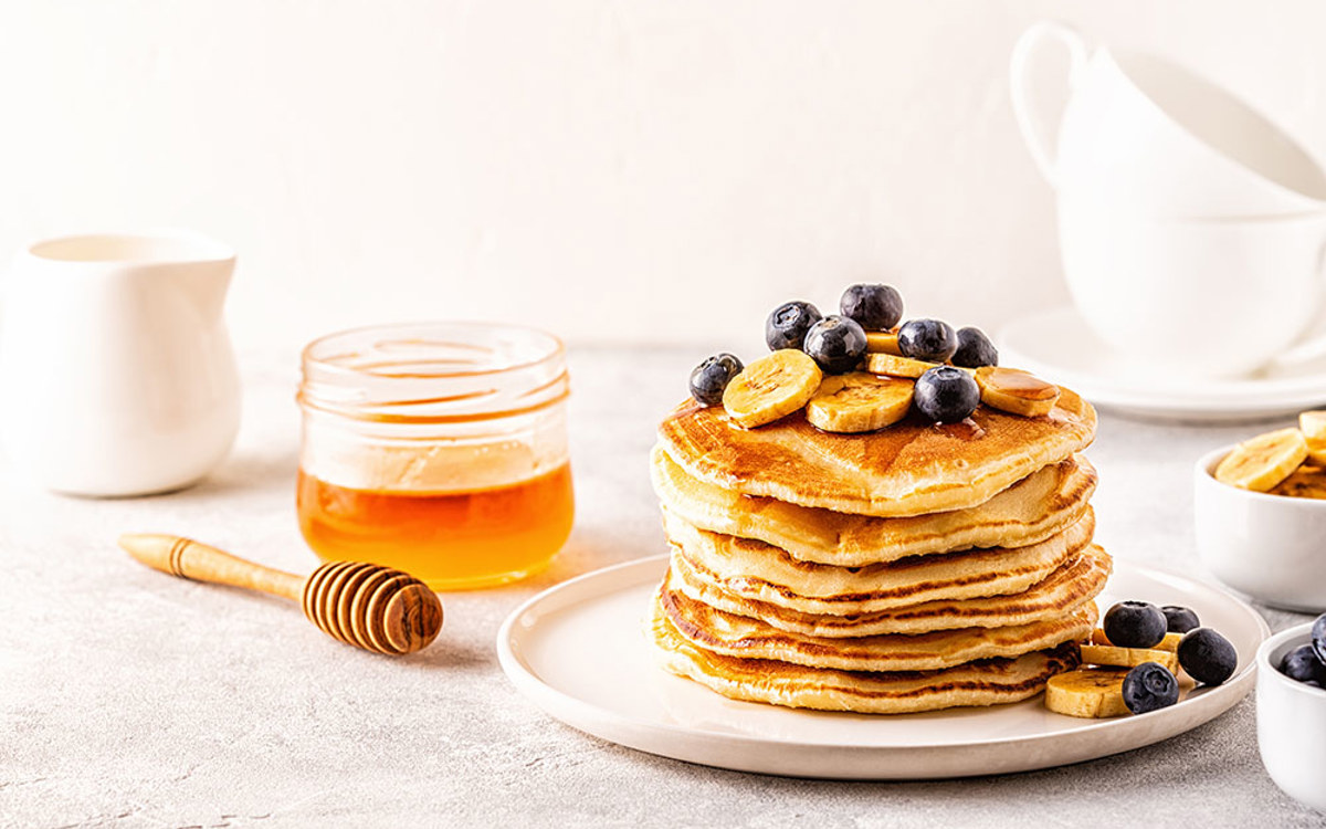 2. Heat a non-stick pan over a medium heat, add a ladle of batter per pancake and cook until golden brown, turning when the edges of the pancakes look set