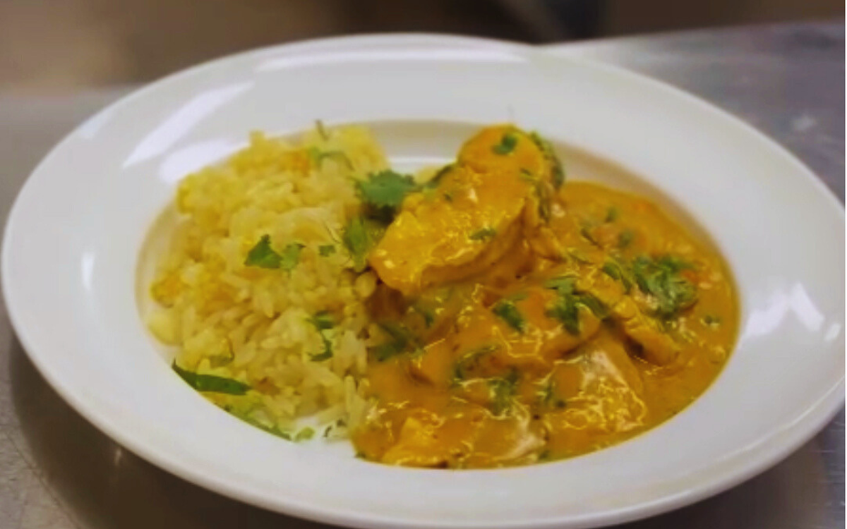 - Add the stock and the coconut milk and simmer for 10-15mins.