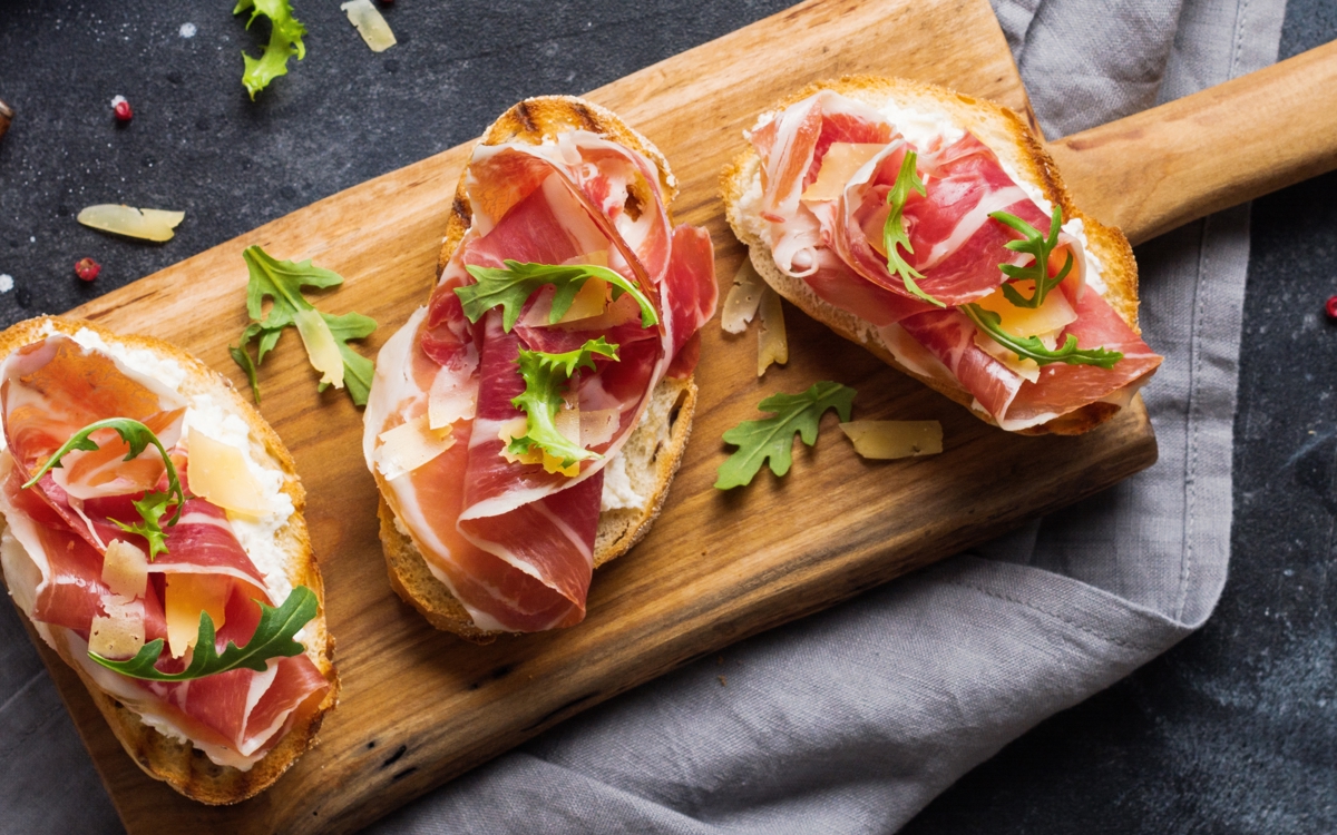 - Add the sliced tomato on top of the wheaten, followed by a slice of cheese & pastrami.