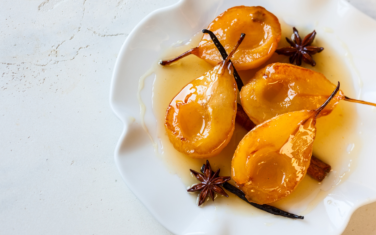- Once cooked, remove the pan from the heat and allow the pears to cool in the sugar syrup.