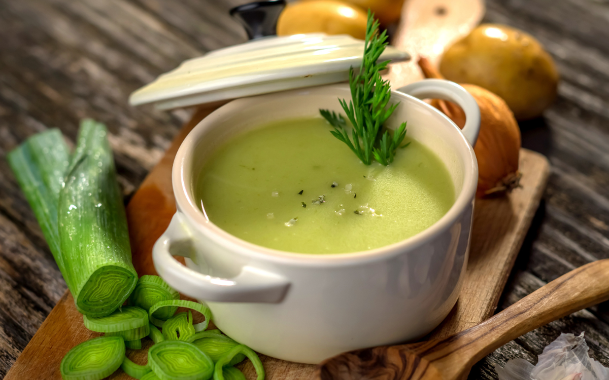 Add the Potatoes and Chicken Stock, cover, bring to the boil, then reduce heat and simmer until Potatoes are soft – remove from heat and cool – once cooled, place in a blender, blitz until creamy and return to saucepan.