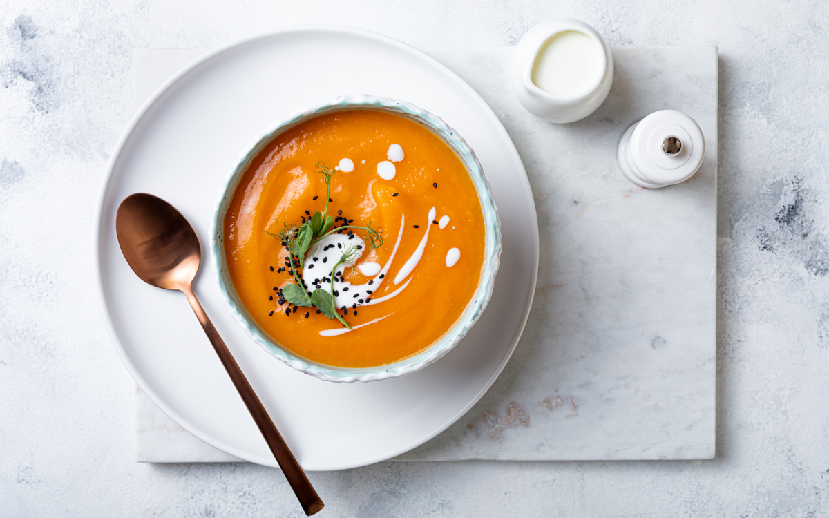 - Blend the soup until smooth, then season with salt and pepper, adding extra water if the soup is too thick.