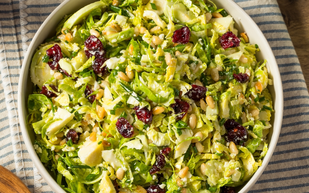 - Place the cabbage, Brussel sprouts, scallions & carrot in a large bowl.
